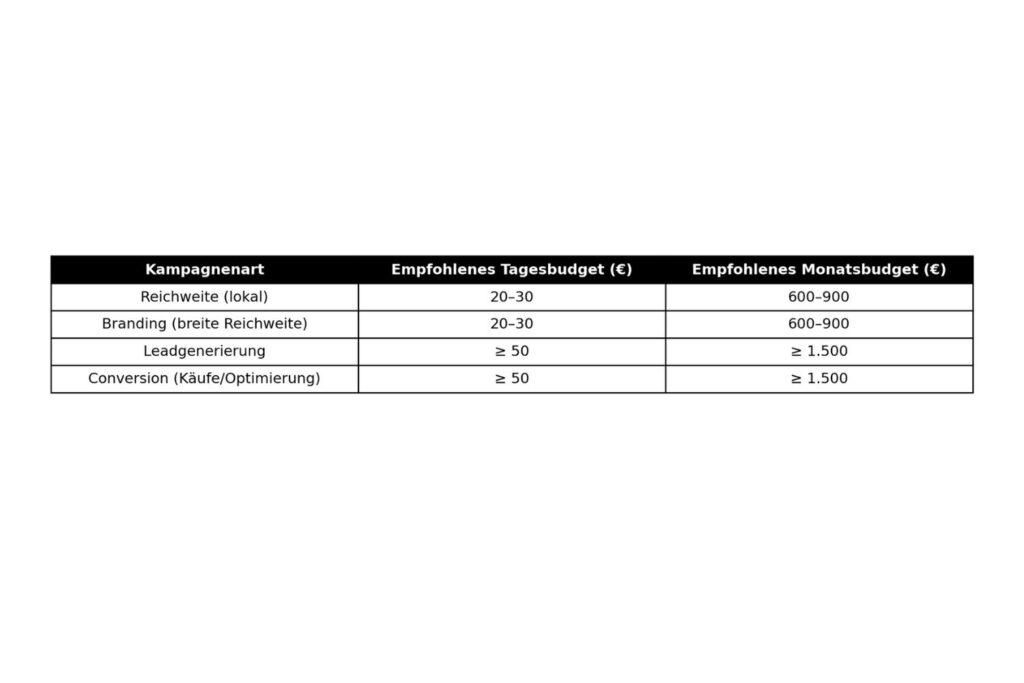 👉 Unsere Empfehlung für Mindest- bzw. Einstiegsbudgets für Meta Werbeanzeigen: