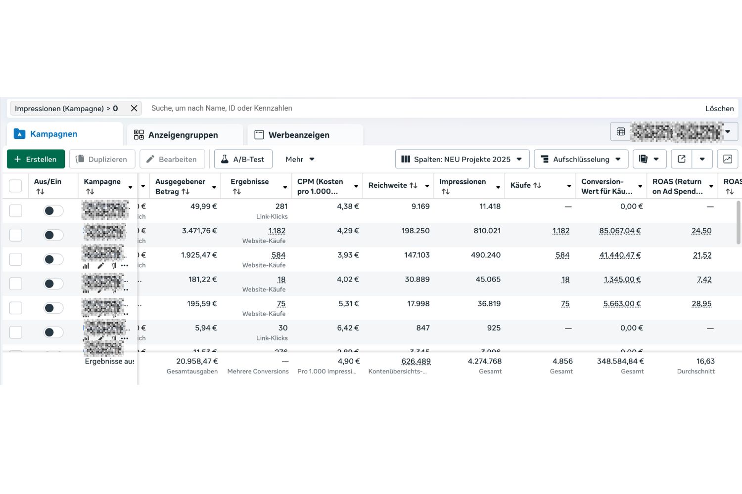 👉 Rund 3–4 Käufe pro 10.000 Impressionen (= 100 € Adspend).