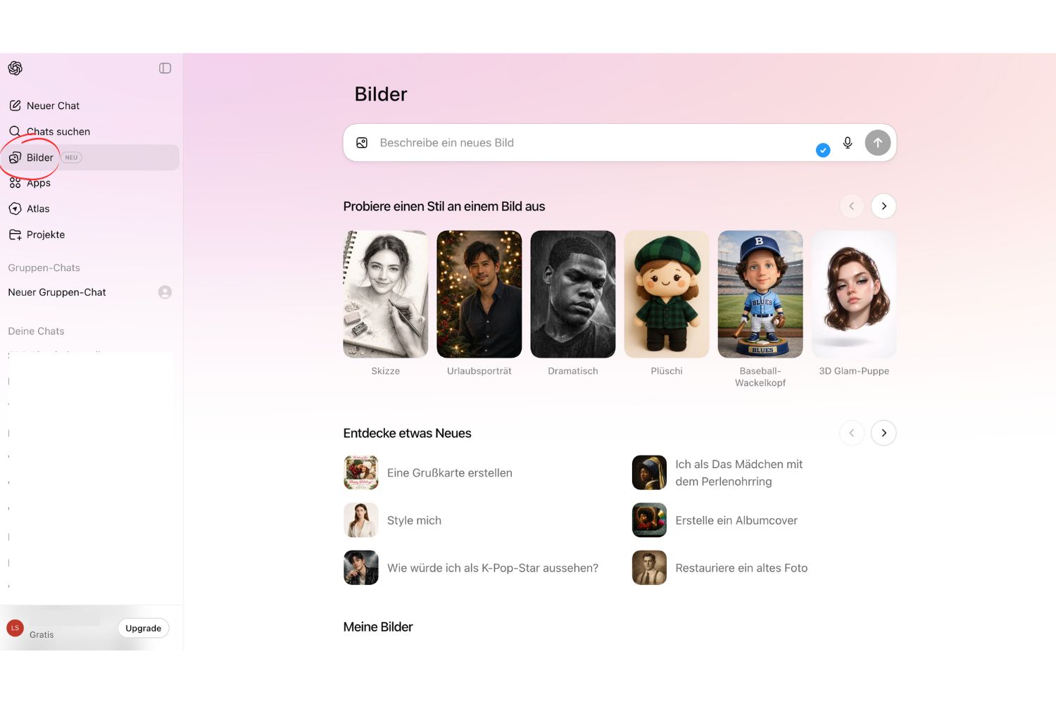 Zusätzlich erleichtert ein eigener Bereich in der Sidebar die Nutzung durch vorgefertigte Stile, Ideen und Beispiel-Prompts. So gelingen kreative Experimente ohne komplexe Formulierungen. Das Update macht die KI-Bildproduktion nicht nur schneller, sondern auch flexibler und ist ideal für Social-Media-Content, bei dem ansprechende Visuals gefragt sind.